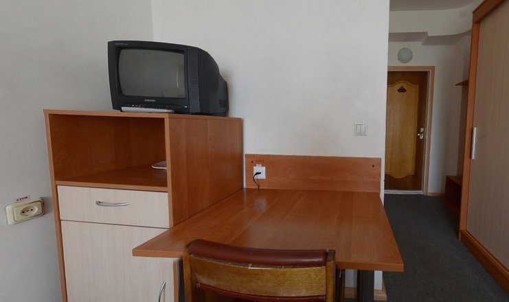 Оснащение номера: кровати односпальные, прикроватные тумбочки, стол, стулья, шкаф, телевизор, холодильник