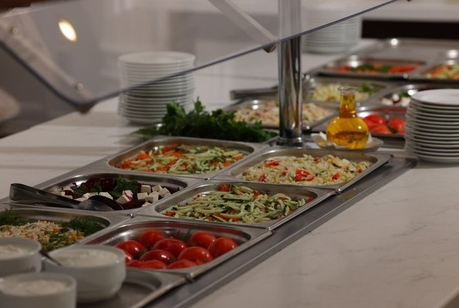 При посещении нашего ресторана Вы сможете насладиться широким выбором блюд, представленных на столах. Наше меню разнообразно и включает в себя различные горячие и холодные блюда. Мы также предлагаем разнообразные напитки, чтобы удовлетворить все вкусы и предпочтения наших гостей.
