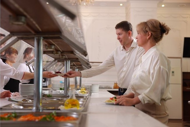 В санатории-профилактории "ЯН" питание играет важную роль в процессе оздоровления и лечения. Мы предлагаем трехразовое питание по системе "Шведский стол", которое организовано в двух просторных залах, расположенных на первом и втором этажах корпуса №2.